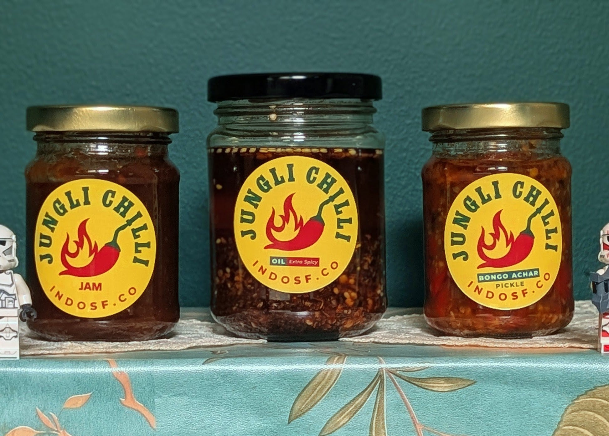 Turn up the fire with your choice of Chilli Jam/Imli Chutney, our Extra Spicy Jungli chilli oil, and the vibrant Bongo Habanero pickle achar.