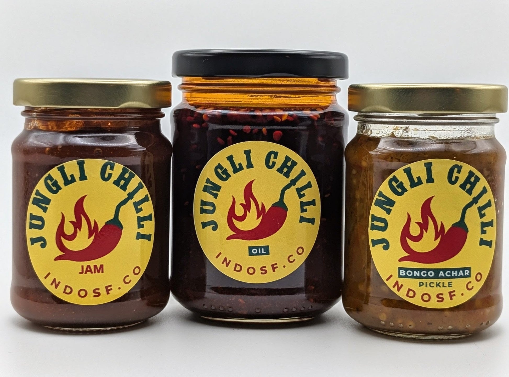 A flavour-packed trio featuring your choice of Chilli Jam/Imli Chutney, our Medium Spice Jungli Chilli Oil, and the bold Bongo Habanero Pickle Achar. Perfect for everyday heat lovers who enjoy a balanced kick.